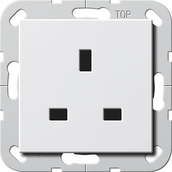 Steckdose British Standard (BS 1363) 13 A 250 V~ mit Shutter Reinweiß glänzend - Mit Schraubklemmen. Nur für Schraubbefestigung. Weitere Funktionen und Varianten auch für die 80er BS-Dose auf Anfrage erhältlich.